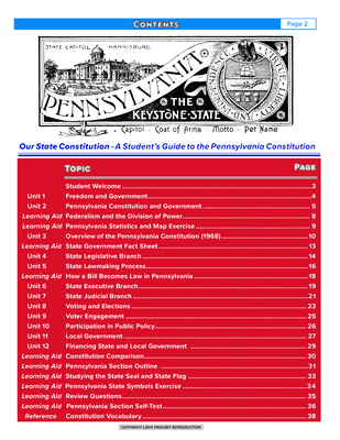 This is the Pennsylvania state unit to "Our Federal Constitution, Our Pennsylvania Constitution." This newly updated and expanded 40-page worktext is designed for schools who teach the state constitution at a different time than the federal unit. This Pennsylvania unit is expanded but keeps the same format as the original state section in the main worktext.